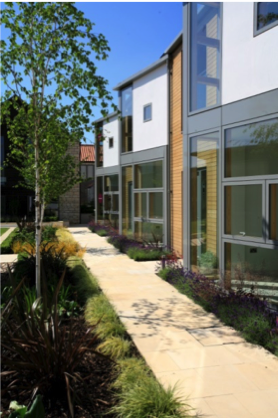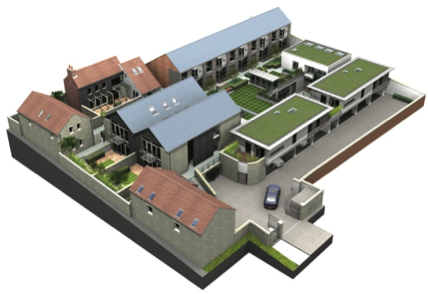Pad55 Ltd aimed to break the retirement housing mould by achieving a lively and dynamic space of 12 common-hold properties for the over 55 market, incorporating contemporary design, super-insulated homes, sedum roofs and on-site power generation. The development was centred around communal facilities including a swimming pool, guest suite and residents' communal lounge.